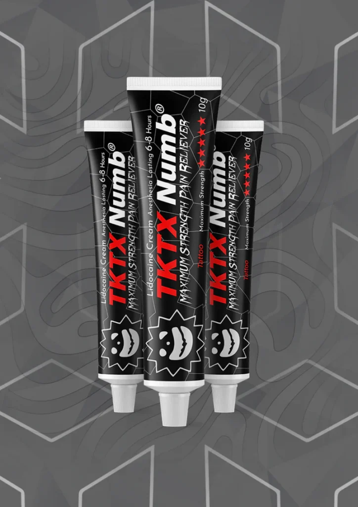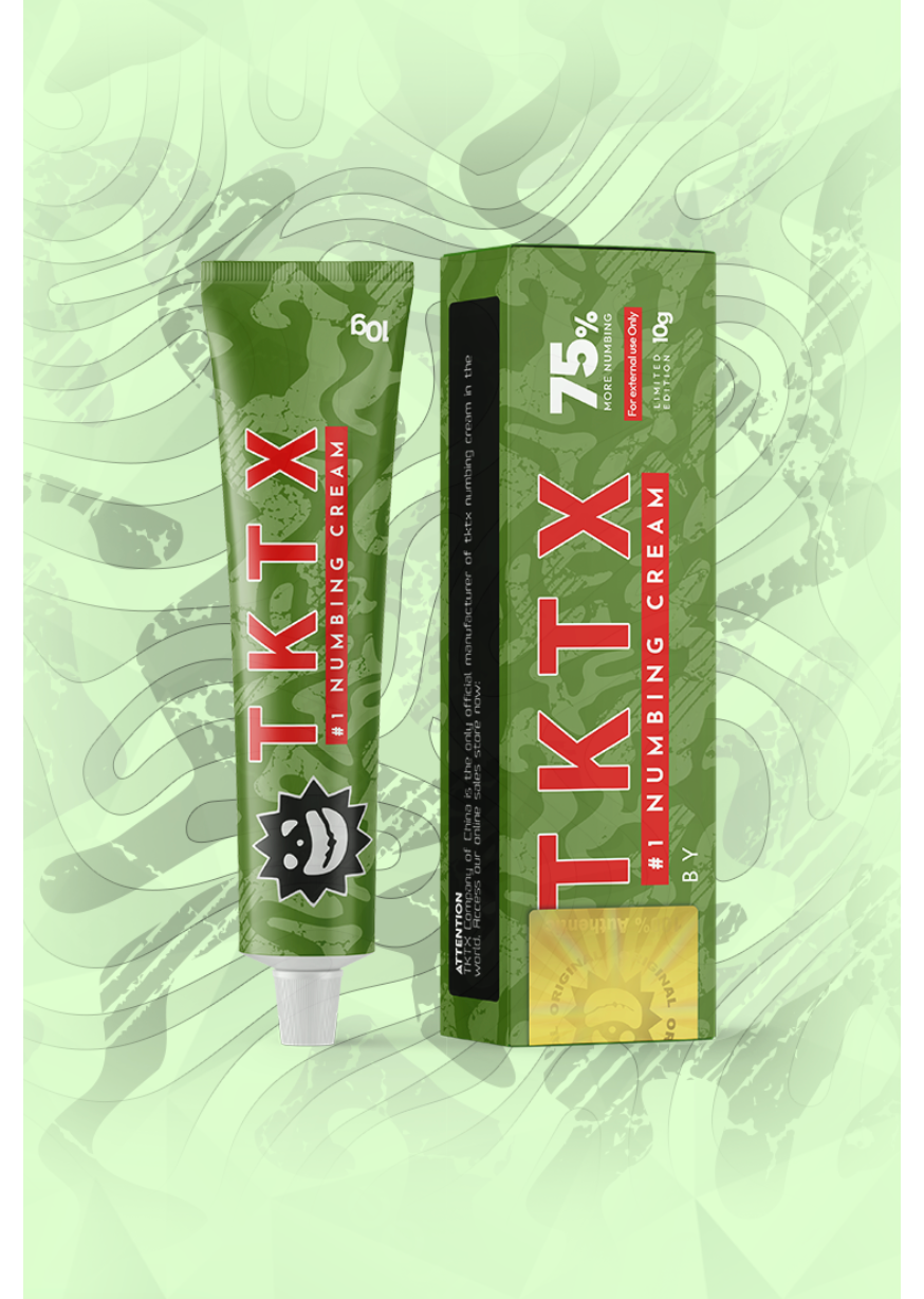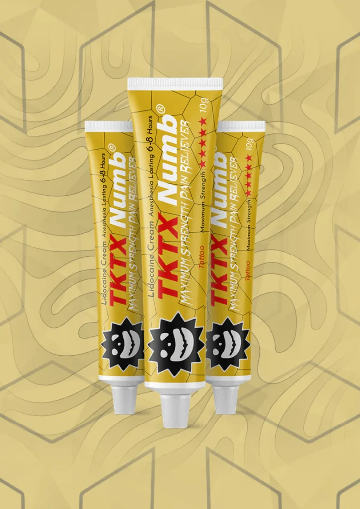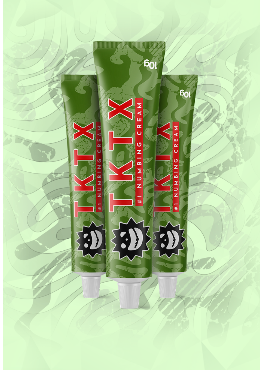 Aplica una capa gruesa de TKTX Numb sobre la zona que deseas adormecer. Cúbrela con film transparente y déjala actuar durante 30 a 60 minutos antes de tu sesión de tatuaje para obtener los mejores resultados.