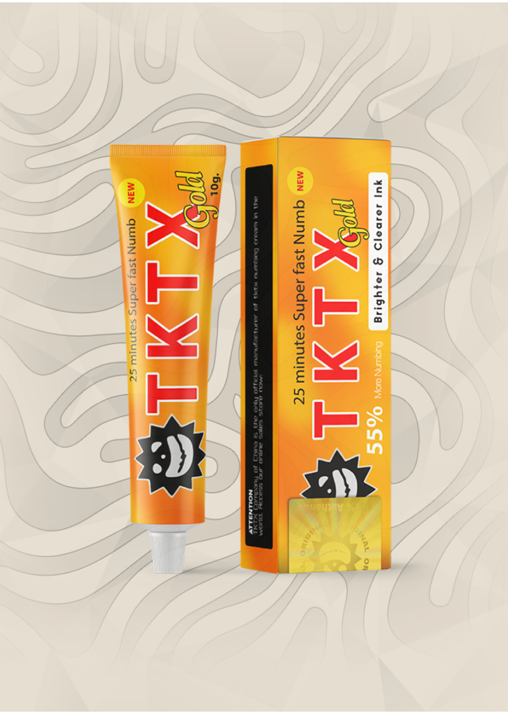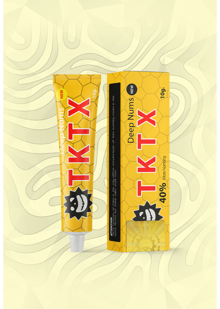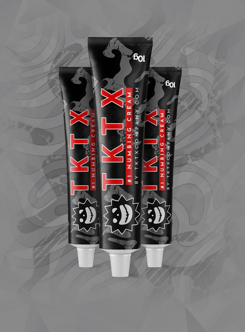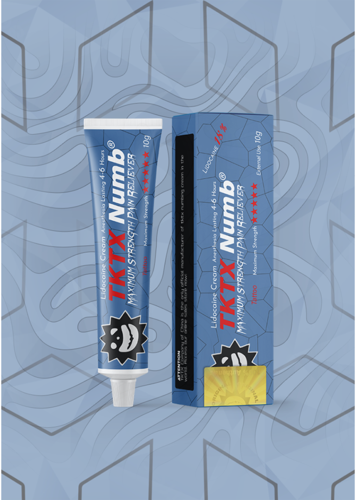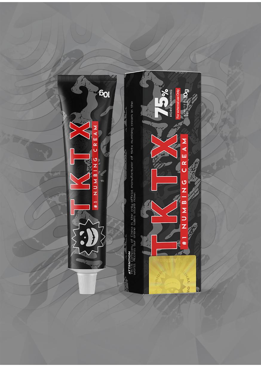 Aplica una capa gruesa de TKTX Numb sobre la zona que deseas adormecer. Cúbrela con film transparente y déjala actuar durante 30 a 60 minutos antes de tu sesión de tatuaje para obtener los mejores resultados.
