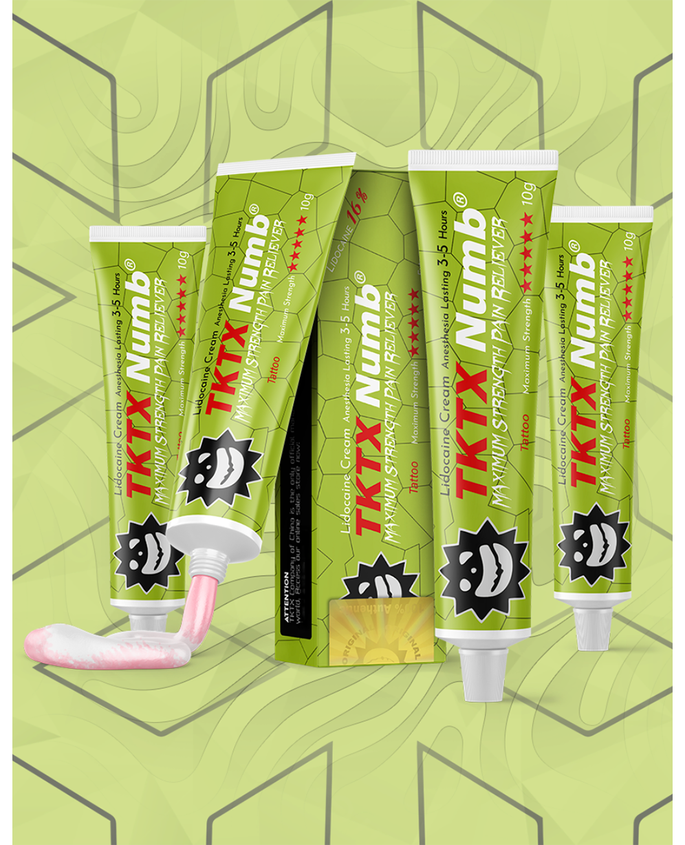 Este set incluye todo lo necesario para una sesión de tatuaje 100% libre de dolor: 3x Cremas TKTX Gold 99%, 1x Spray Anestésico TKTX y 1x Bálsamo Aftercare TKTX.