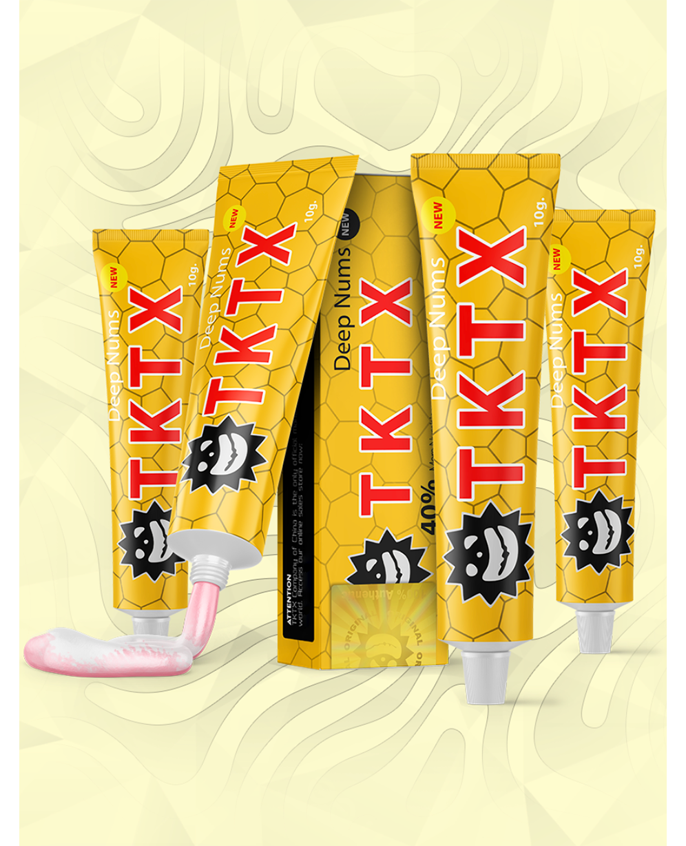 Este set incluye todo lo necesario para una sesión de tatuaje 100% libre de dolor: 3x Cremas TKTX Gold 99%, 1x Spray Anestésico TKTX y 1x Bálsamo Aftercare TKTX.